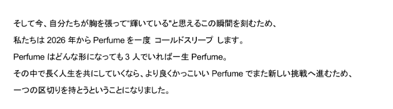 しかし、Perfumeは2025年末で活動休止を発表しています。